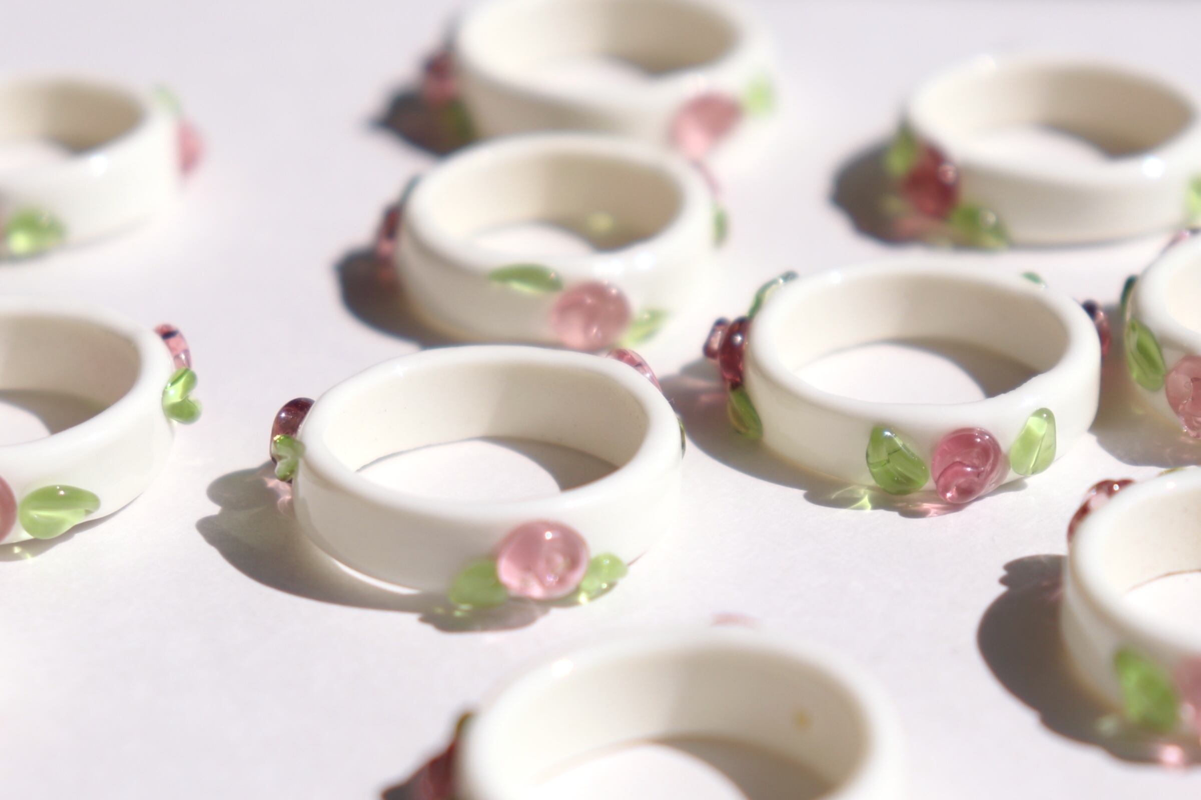 このバラ、tentwoで定番となっているお花のガラスリングのようにひとつひとつガラスで描いています✳︎
